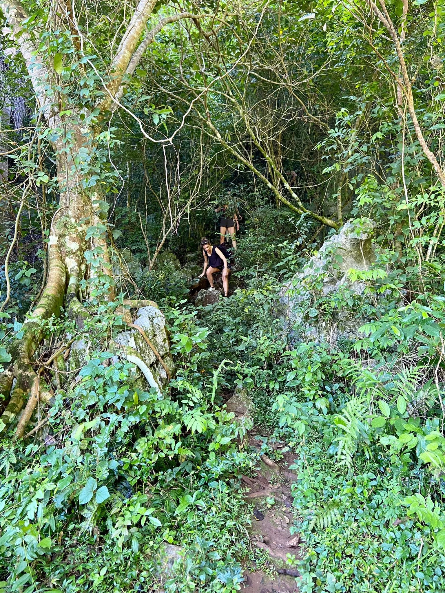 Am nächsten morgen gingen wir auf den Hike unseres Lebens. Über Felder, mitten durch Büsche und Schlammkuhlen führte uns ein anderer Guide um Viñales herum. Ich sag euch, eine klassische Sporteinheit ist nichts dagegen. Es ging in einem Mordstempo einen Berg hoch, durch eine stockdüstere Höhle (nein, unser Guide hat kein Licht angemacht und ich hatte ernsthaft Angst um Steve, der mehr stolperte als lief) und wieder einen Berg runter, den ich mehr runter rutschte als lief. Ich habe selten so geschwitzt. In einem kleinen Holzhaus mitten im Nichts gab es als Entschädigung Piña Coladas, in die wir den Rum selbst hinzufügen sollten. Eine Extraportion auf den Stress - sowie ein Abendessen mit Blick auf die Prärie und eine Runde Spiele.